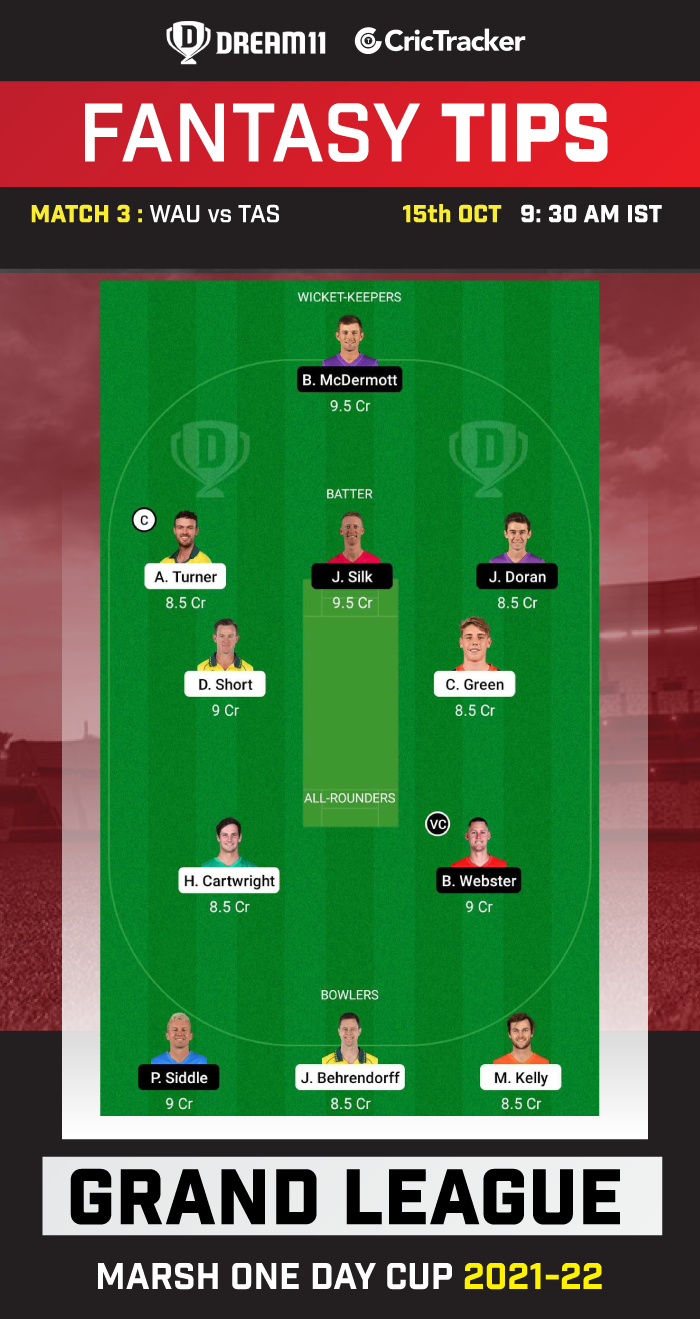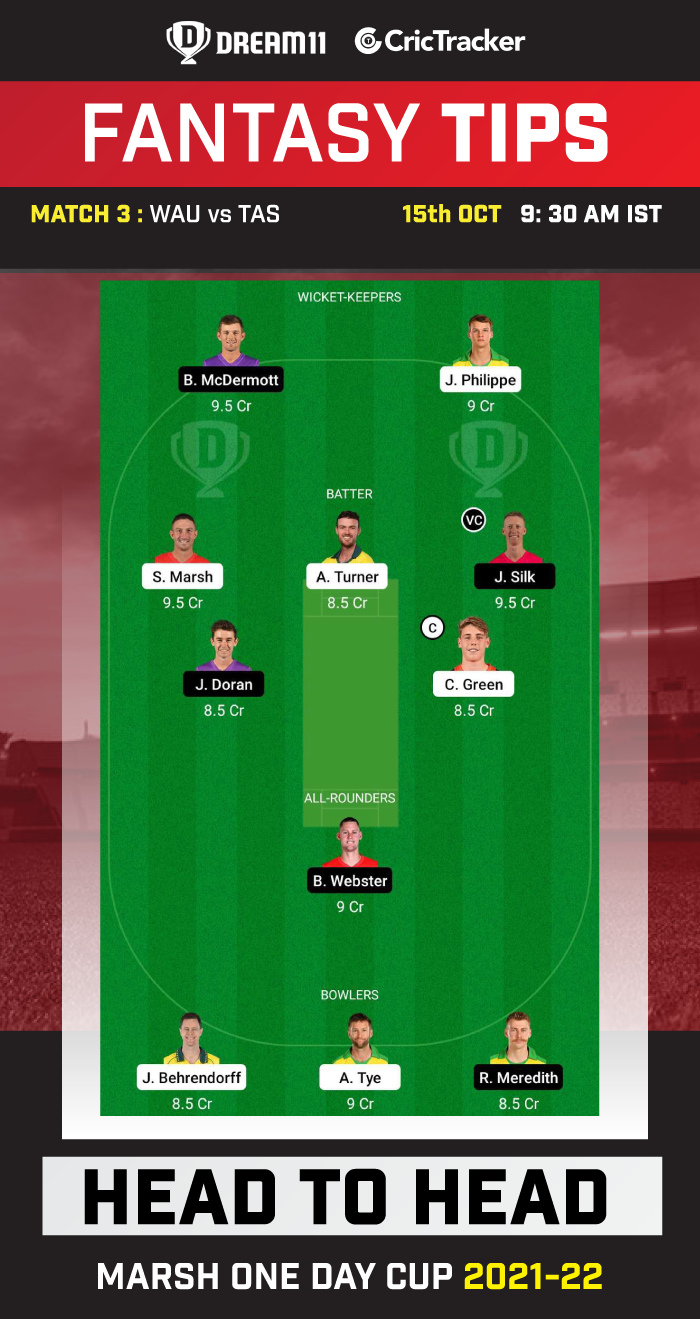 Suggested Playing XI No.1 for WAU vs TAS Dream11 Fantasy Cricket:
