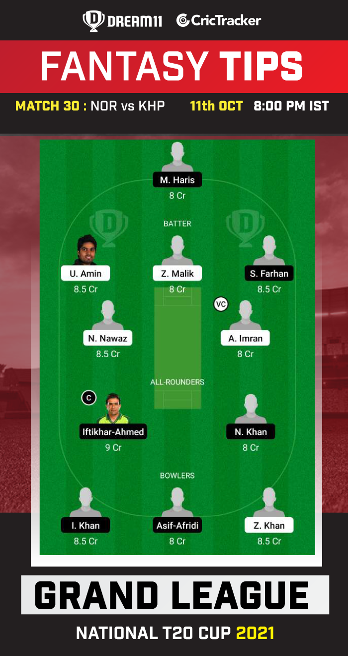 NOR vs KHP Must Picks for Dream11 Fantasy Cricket: