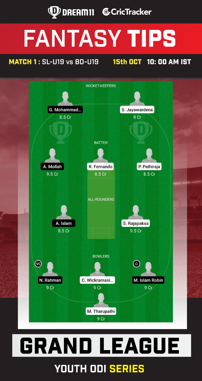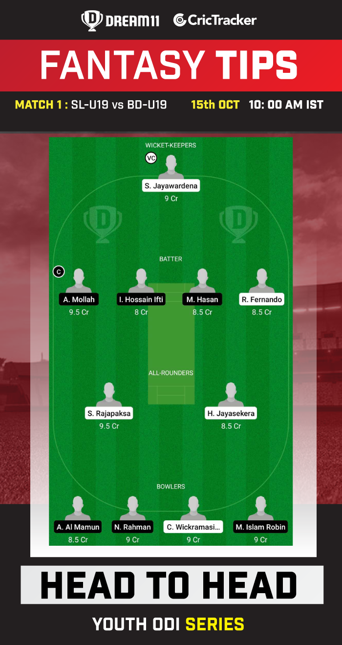 Suggested Playing XI No.1 for SL-U19 vs BD-U19 Dream11 Fantasy Cricket: