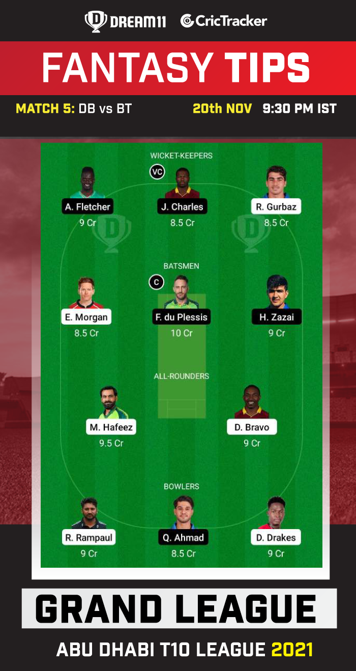 Hazratullah Zazai played quite well for his 18 runs against Team Abu Dhabi. However, it wasn’t sufficient at all by any means for Bangla Tigers. You can take a risk and pick him as your fantasy team skipper.