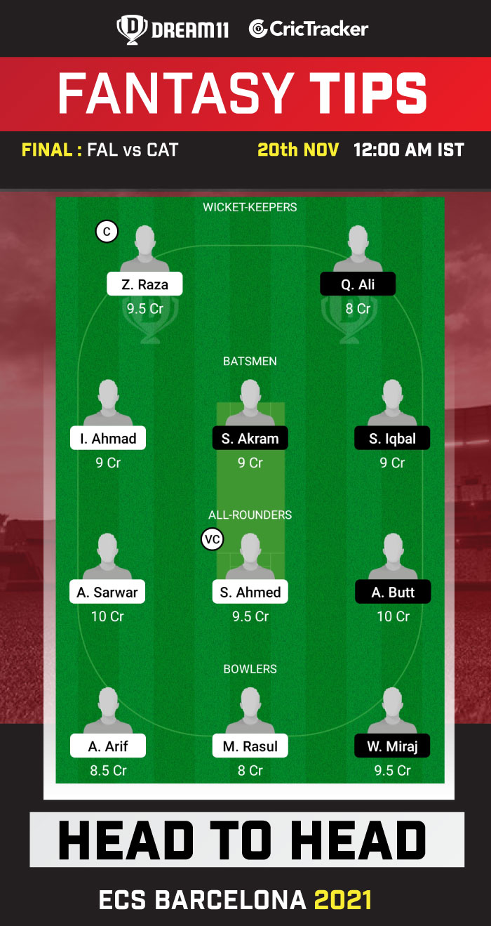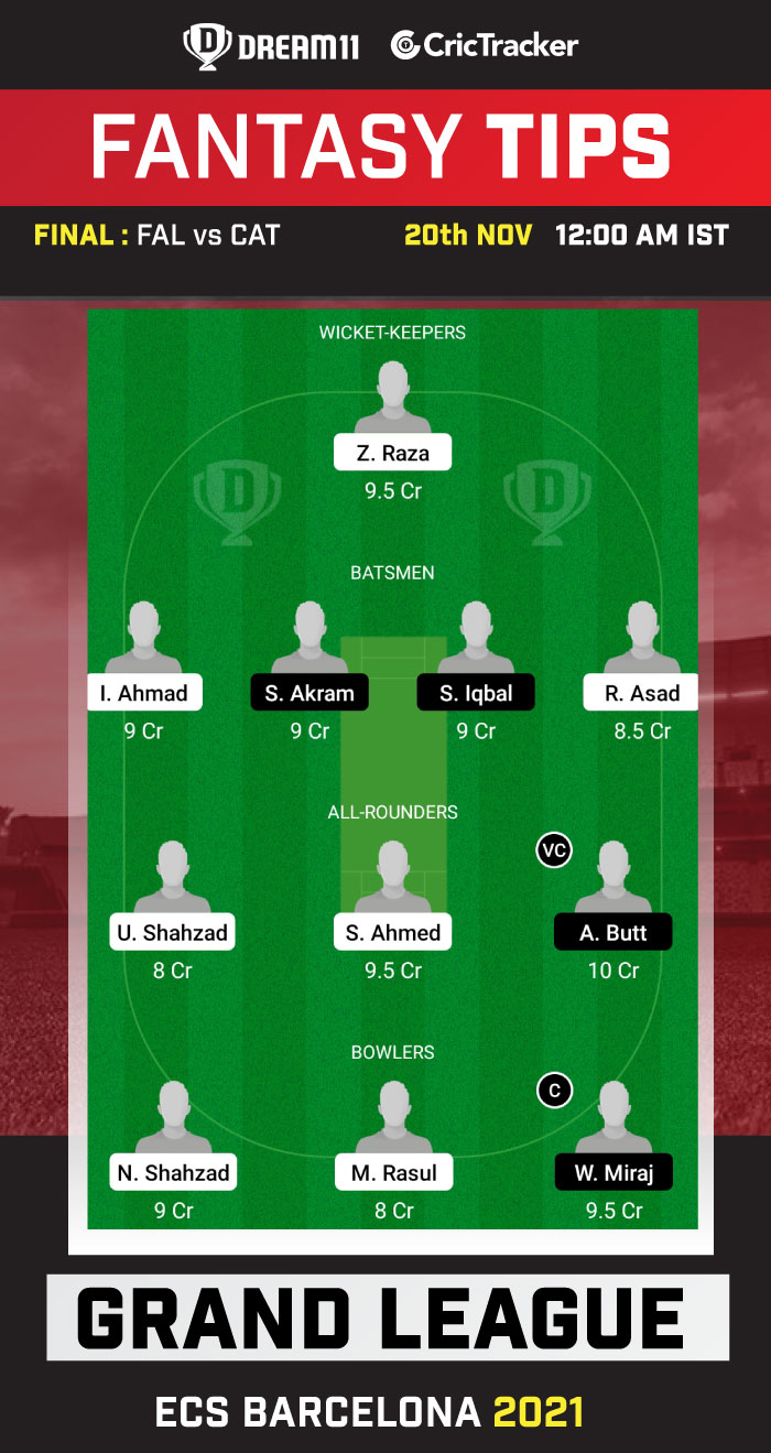 Suggested Playing XI No.1 for FAL vs CAT Dream11 Fantasy Cricket: