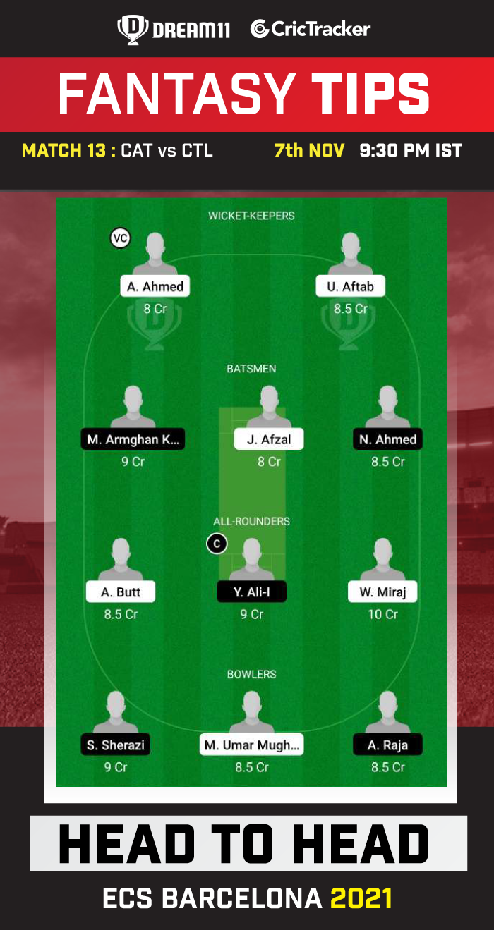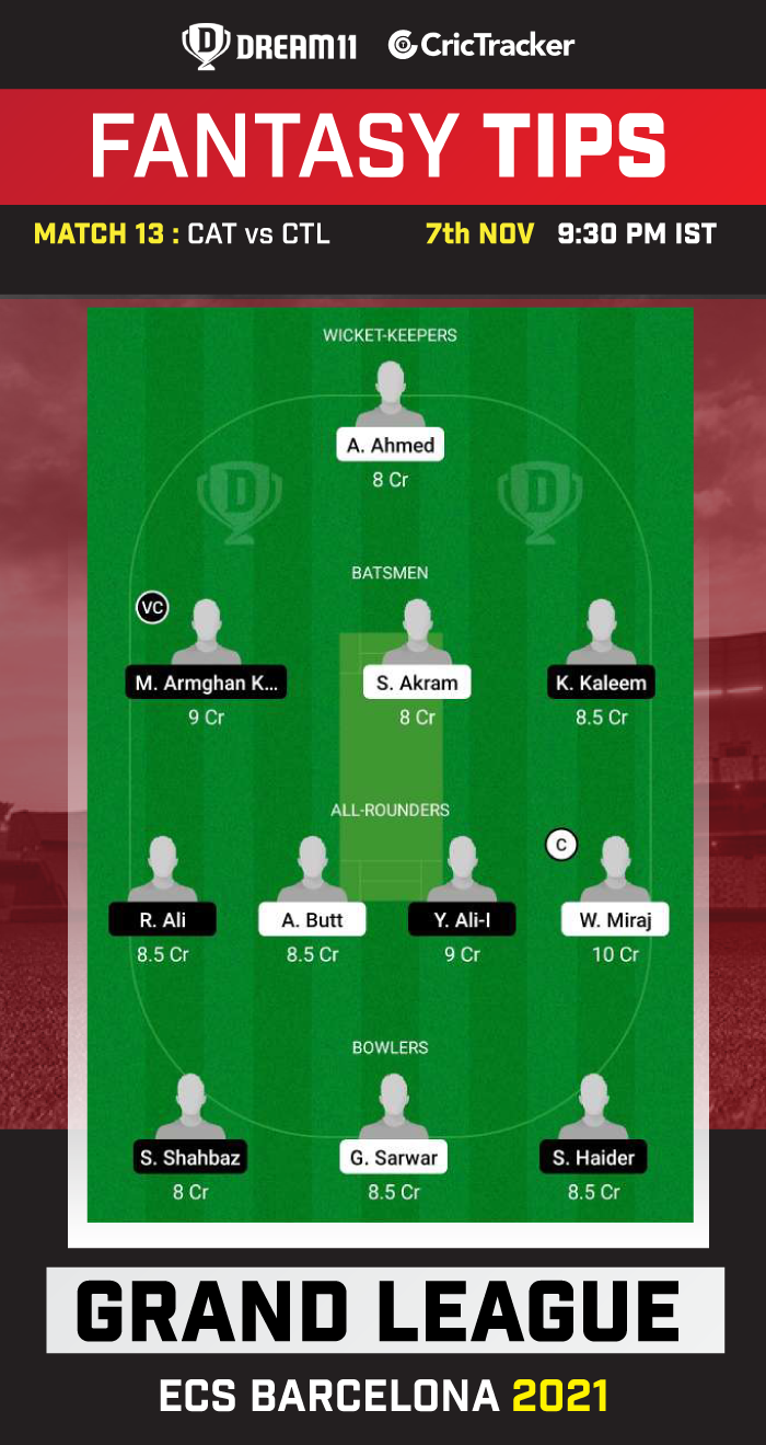 Suggested Playing XI No.1 for CAT vs CTL Dream11 Fantasy Cricket: