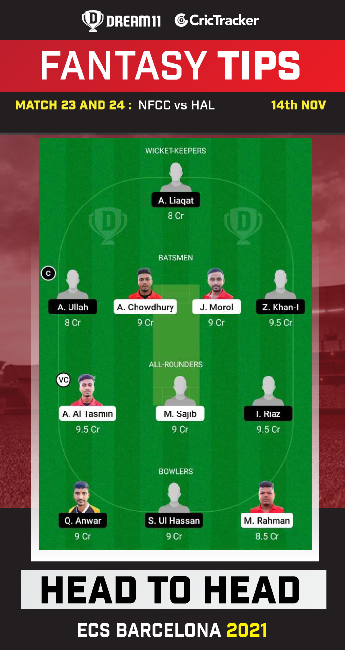 Suggested Playing XI No.1 for NFCC vs HAL Dream11 Fantasy Cricket: