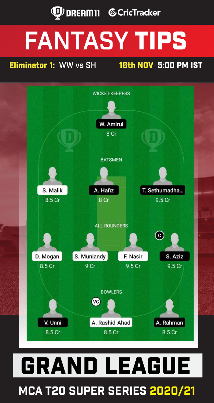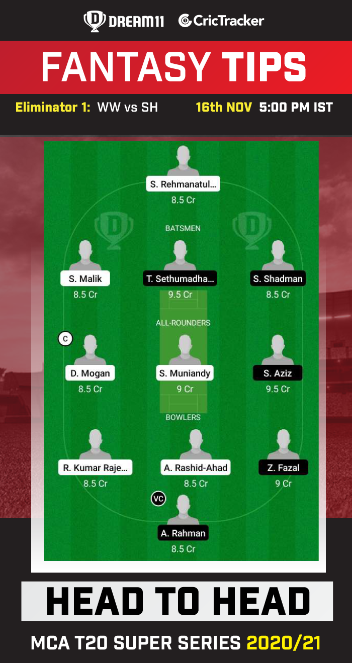 Suggested Playing XI No.1 for WW vs SH Dream11 Fantasy Cricket: