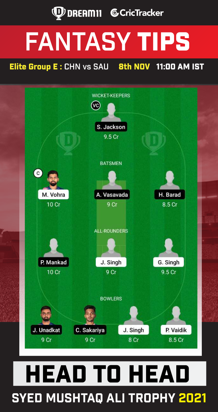 Talking about Saurashtra, they bowled really well to wrap up Uttarakhand for 144 runs and claimed a 2-run victory. They are currently placed at the 3rd spot in the league table with 2 wins from three matches. Hence, we can expect a good competitive battle between these two teams on Monday.